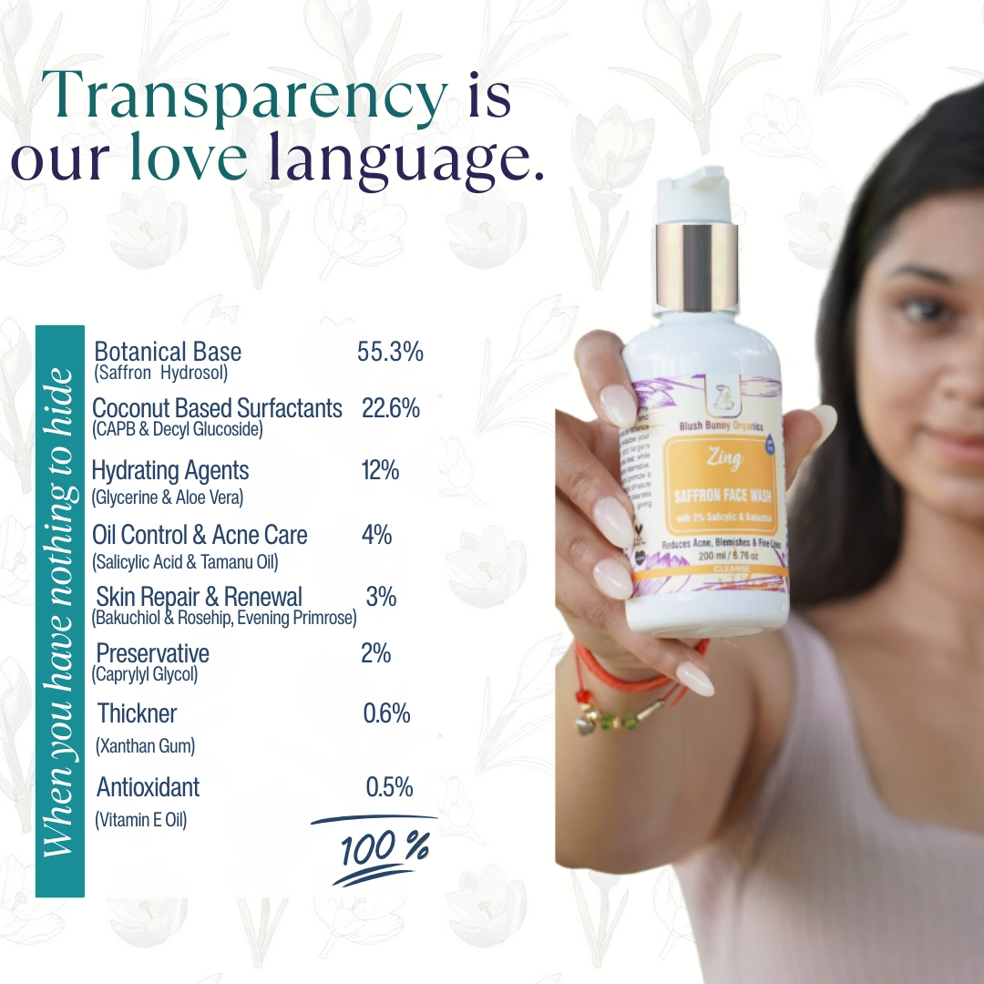 -22%BBO Saffron Face Wash with Salicylic Acid (sourced from Willow Bark) and Bakuchiol is a gentle yet effective cleanser designed to fight acne, balance oil production, and brighten your skin. Infused with Saffron Hydrosol, nourishing oils, and natural plant-based ingredients, it purifies your skin while keeping it hydrated and soothed, leaving your complexion radiant and refreshed.
